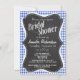 Royal Blue and White Houndstooth; Chalkboard look Invitation