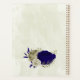 Beautiful romantic wedding planner featuring royal blue and beige flowers and some leaves .