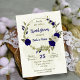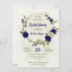 Beautiful romantic bridal shower invitations featuring royal blue and beige flowers and some leaves .