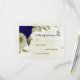 Beautiful romantic wedding response card featuring royal blue and beige flowers and some leaves .