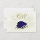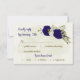 Beautiful romantic wedding response card featuring royal blue and beige flowers and some leaves .