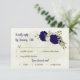 Royal blue beige flowers botanical wedding RSVP card