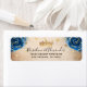 Create your own royal blue and gold return address labels with this easy-to-edit DIY template, perfect for adding a regal touch to your event stationery. This original fairy tale artwork by Raphaela Wilson showcases deep sapphire blue watercolor roses paired with shimmering faux champagne gold accents, glitter sparkle butterfly confetti, and a vintage parchment paper background for a timeless, mediaeval feel. The layout features a graceful mix of calligraphy script and modern typography, which can be effortlessly personalised to best suite your fancy. Ideal for blue rose weddings, a princess quinceanera, elegant sweet 16 birthday party, storybook bridal or baby shower, these custom return address labels add a luxurious flair to invitation envelopes and rsvp stationery. They can also be reworded and repurposed as save the date stickers, guest favour seals, or monogram thank you labels. Category: personalised floral template return address labels / gold crown stickers; custom royal blue rose wedding return address labels with whimsical butterflies; and parchment return address labels for envelopes. Royal blue and gold themed party colours: dark blue, royal blue, navy, deep sapphire blue, yellow gold, light brown, tan, beige, ivory, cream, and black.