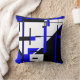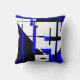 Royal Blue, Black on White Geometric Abstract Art Cushion