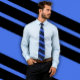 This royal blue and black necktie features black diagonal stripes in bunched grouping of three. A striking and eye catching royal blue tie to compliment your outfit.