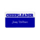 Great cheerleader labels ready to customise with your own text. CHEERLEADER, in bold blue, against a white background, sits above a solid blue text field. Great as name tags or for labelling your property for school or while away at camp. More colours available at Dizzy Debbie.