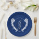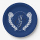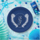 Royal blue and white minimalist elegant floral monogram classic personalised wedding paper plates. This product is easily editable. If you need help with the customisation of this product or you need more matching products for this collection kindly message me via Zazzle.