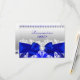 Royal Blue Quinceañera RSVP. Elegant blue and white damask design with pearl silk bow. Customise with your own details. Please note: All flat images. They do not have real bows, lace or jewels!