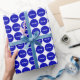 A wrapping paper designed with a royal blue dot pattern on a white background and name. Customise the wrapping paper with your special name or text among other options.