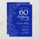 Royal Blue Floral 60th Birthday Party Invitation. Minimalist modern design featuring botanical outline drawings accents and typography script font. Simple trendy invite card perfect for a stylish female bday celebration. Can be customised to any age. Printed Zazzle invitations or instant download digital printable template.