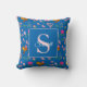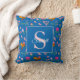 Royal Blue Floral Bee Pattern Monogram Name Cushion