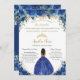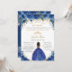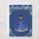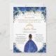 Royal Blue Floral Dama Request Gold Quinceañera XV Invitation