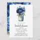 Royal Blue Floral Mason Jar Photo Bridal Shower Invitation