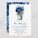 Royal Blue Floral Mason Jar QR Code Wedding Invitation