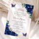 Royal Blue Floral Rose Gold Quinceañera Butterfly Invitation
