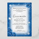 Available in silver, rose gold, and gold foiling, these unique, beautiful real foil quinceanera invitations can add a luxurious sparkle to your celebration. The pretty butterfly art by Raphaela Wilson depicts real silver foiling for the butterfly confetti, Cinderella princess crown / tiara, and ornate filigree dress border decorated with clusters of royal blue watercolor roses. If you'd like to include a glam Mis Quince Anos photo, simply upload a picture to the backside of your custom quince invites, or additional text details. Feel free to additionally change the modern calligraphy script and traditional fonts to match your typography style. These DIY real foil template invitations may also be reworded to suit royal blue weddings, a once upon a time themed princess sweet 16 birthday party, girl baby shower, a fairytale bridal shower, and many other momentous events. Category: blue rose wedding invitations, personalised quinceanera invitations with flowers / butterflies; and personalised stationery with real silver foil. Royal blue quinceañera party theme colours: dark blue, navy, metallic silver, black and white.