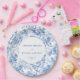 Elevate your reception décor with these navy roses French Toile de Jouy wedding paper plates. Featuring elegant blue roses in navy blue, royal blue, dusty blue, and deep blue tones, this floral design adds timeless charm to bridal showers, rehearsal dinners, and formal celebrations. Perfect for classic, romantic, or vintage-inspired themes, these stylish disposable plates combine beauty and convenience for a coordinated wedding tablescape.