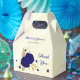 Beautiful royal blue flowers & gold leaves on marble background favour box