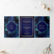 Royal Blue Galaxy Mandala QR Code Indian Wedding Tri-Fold Invitation