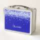 A chic royal blue background, decorated with faux glitter sparkles. Personalise and add a name written with a modern, elegant hand lettered style script.