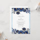 Deep royal blue watercolor anemones are accented with delicate gold metallic outlines to create a sophisticated aesthetic. Lush navy leaves and buds sit at the top and bottom of the clean white layout for a refined look. This botanical artwork features a moody yet elegant palette, ideal for a formal evening or winter event.