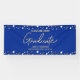 Featuring a stunning royal blue background adorned with gold and white confetti print, this banner creates a festive and celebratory atmosphere. The modern, handwritten style typography for the word "Graduate" adds a touch of elegance and sophistication, making this banner a standout piece for any graduation event.