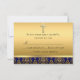Royal Blue & Gold Damask Cross Baptism RSVP Card