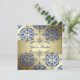 Elegant royal blue and gold damask party invitation template. This beautiful royal blue and gold party invitation is easily customised for your event by simply choosing the "Customise it!" button to begin adding your event details, font style, font size & colour, and wording. Please note - all of the stickers, cards and invitation designs you will find on Zazzle are printed graphics with no actual jewels, bows, raised, embossed, or added parts or pieces.