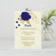 romantic royal blue flowers and gold leaves botanical details enclosure card.