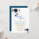 Royal Blue Gold Flowers Monogram Bridal Shower Invitation
