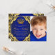 Royal blue and gold prince birthday party invitation with royal blue and gold crown on a royal blue and gold swirl background. This beautiful any number royal blue and gold prince birthday party invitation is easily customised for your event by adding your photo and event details, font style, font size & colour, and wording. This is a printed design with no real jewels, glitter, etc.