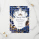 Royal Blue Golden Tiara Floral Quinceañera Save The Date