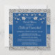 Keep with your royal blue and silver Love Hearts wedding theme with this romantic Bridal or Wedding Shower invitation with images of a pair of joined hearts overtop of a royal blue ribbon and bow image running across the centre of the invite. There is a simulated silver border around the edges of the card on the front and back sides. The shower details are printed in grey on a royal blue background on the back with a silver floral arch at the top. If you need any additional matching items, please email your request to niteowlstudio@gmail.com or use the Zazzle chat feature to get in touch.