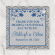 Keep with your royal blue and silver Love Hearts wedding theme with this romantic wedding favour tag with images of a pair of joined hearts overtop of a royal blue ribbon and bow image running across the centre of the tag. There is a simulated silver border around the edges of the tag on the front and back sides. The front side says, "Thank You" in grey and the back of the tag is personalised to say, "Thank you for sharing our special day with us!" and also has the names of the bride and groom and the wedding date in royal blue on a grey background on the back with a blue floral arch at the top. If you need any additional matching items, please email your request to niteowlstudio@gmail.com or use the Zazzle chat feature to get in touch.