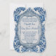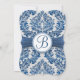 Royal blue leafy damask monogram Wedding Invite