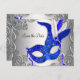 Beautiful royal blue masquerade party save the date postcard. You can delete the silver from the back side if you want white or to add the background colour of your choice.