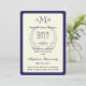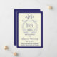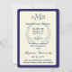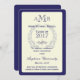 This formal elegant graduation announcement features a royal blue border and monogram initials at the top. The ornate calligraphy style embellishment in the centre and laurel watermark gives it a touch of class. Personalise these announcements with your graduation information. There is also plenty of room on the back for more information. This design works best with rounded corners, for rectangle or square please see the following: