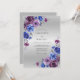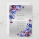 This design features a sophisticated palette of royal blue, deep plum, and soft lavender watercolor blossoms against a silver gradient. Lush roses and ranunculus petals create a romantic and moody atmosphere. The artistically rendered floral clusters and grey foliage add an ethereal and timeless elegance.
