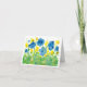 A pretty floral thank you notecard decorated with a wildflower garden if royal blue poppy style flowers and sunshine yellow wildflowers painted in watercolor.
