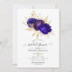 Royal blue and purple floral bridal shower invitation card with accents of gold customisable to your event specifics.