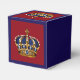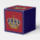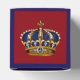 Royal blue red and gold crown prince baby shower favour boxes with beautiful blue and gold jewel crown on a regal red and royal blue background. These elegant royal baby shower boxes are easily customised for your event by adding text. You can also move the crowns and change their size as needed. You can also change the background colour. This is a printed design with no real jewels, etc.