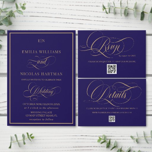 Royal Blue Romantic Calligraphy Wedding RSVP Card