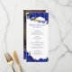 Royal Blue roses with gold accents and papel picado bunting banner, in a menu design to match many of the quinceanera and western cowboy/cowgirl charro/charra themed invitations in the shop. Can be customised to fit your occasions and for your needs.
