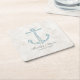 Royal Blue Rustic Anchor Wedding Square Paper Coaster