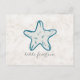Perfect for a nautical themed wedding is this Rustic Starfish Wedding Table Number Postcard with a dark blue outlined starfish on a light beige marble look background. This classic and simple beach wedding table card is easy to customise with your wedding details. Find more personalisation options by clicking Customise.