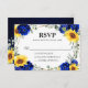 Royal Blue Rustic Sunflower Geometric Wedding RSVP Card