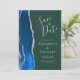 Royal Blue Silver Agate Green Save the Date Card