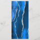 This elegant, modern wedding menu features a watercolor royal blue agate background trimmed with silver faux glitter. The text appears in elegant silver grey handwriting and copperplate fonts on a plum rectangle. The agate design is repeated on the reverse.