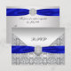Elegant royal blue and silver wedding RSVP response card with beautiful royal blue diamond ribbon on an elegant silver lace background. You can easily customise these beautiful royal blue RSVP cards for your event by simply adding your details in the font style and wording of your choice. This is a printed design with no real ribbons, diamonds, lace, etc.