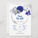 Gorgeous royal blue rose and lilies with silver rose and daisy flower botanical wreath save the date invitation .